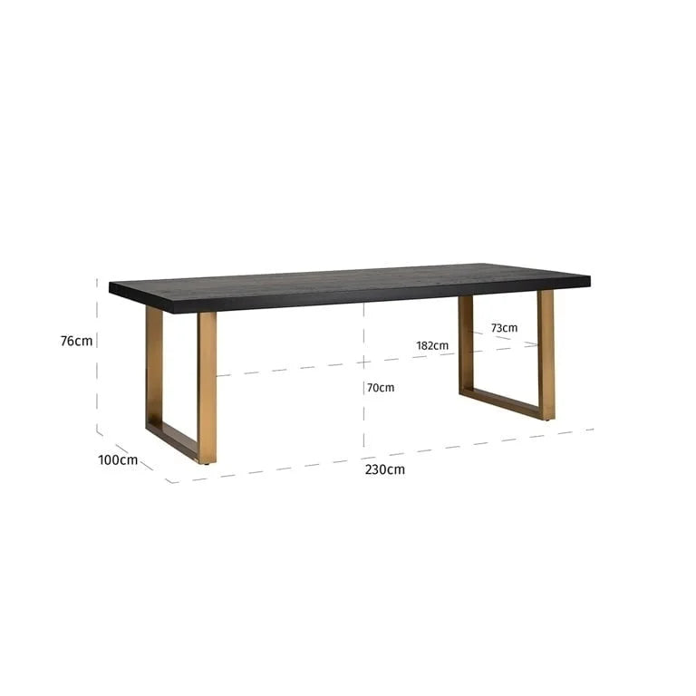 RICHMOND bordsskiva WATSON 230 svart. Watson är en elegant bordsskiva som håller hög klass. Den 230 cm långa rektangulära bordsskivan är dekorerad med en vacker ekfanér i en djup svart nyans. Vi rekommenderar att du kombinerar med baskoden: 9835 i svart eller 6062, 6063, 9840 i guld, 6061 i silver. Mått: höjd 6 cm / bredd 230 cm / djup 100 cm Bruttovikt: 69,5 kg.